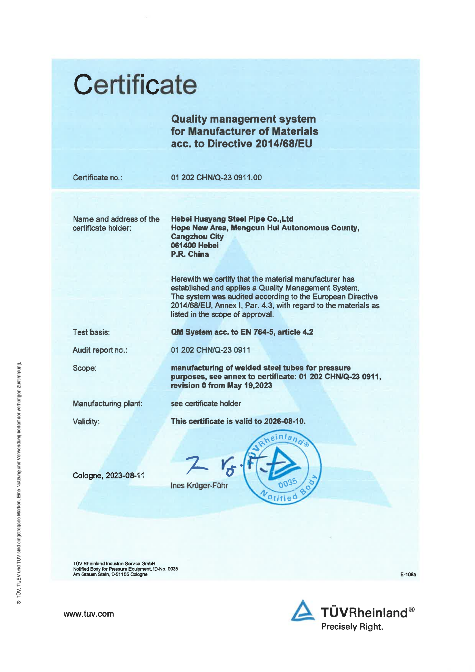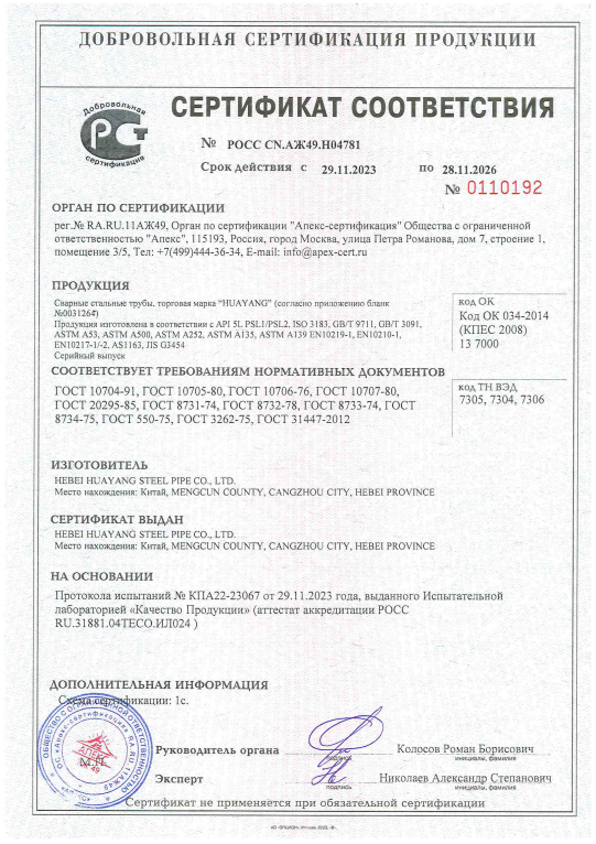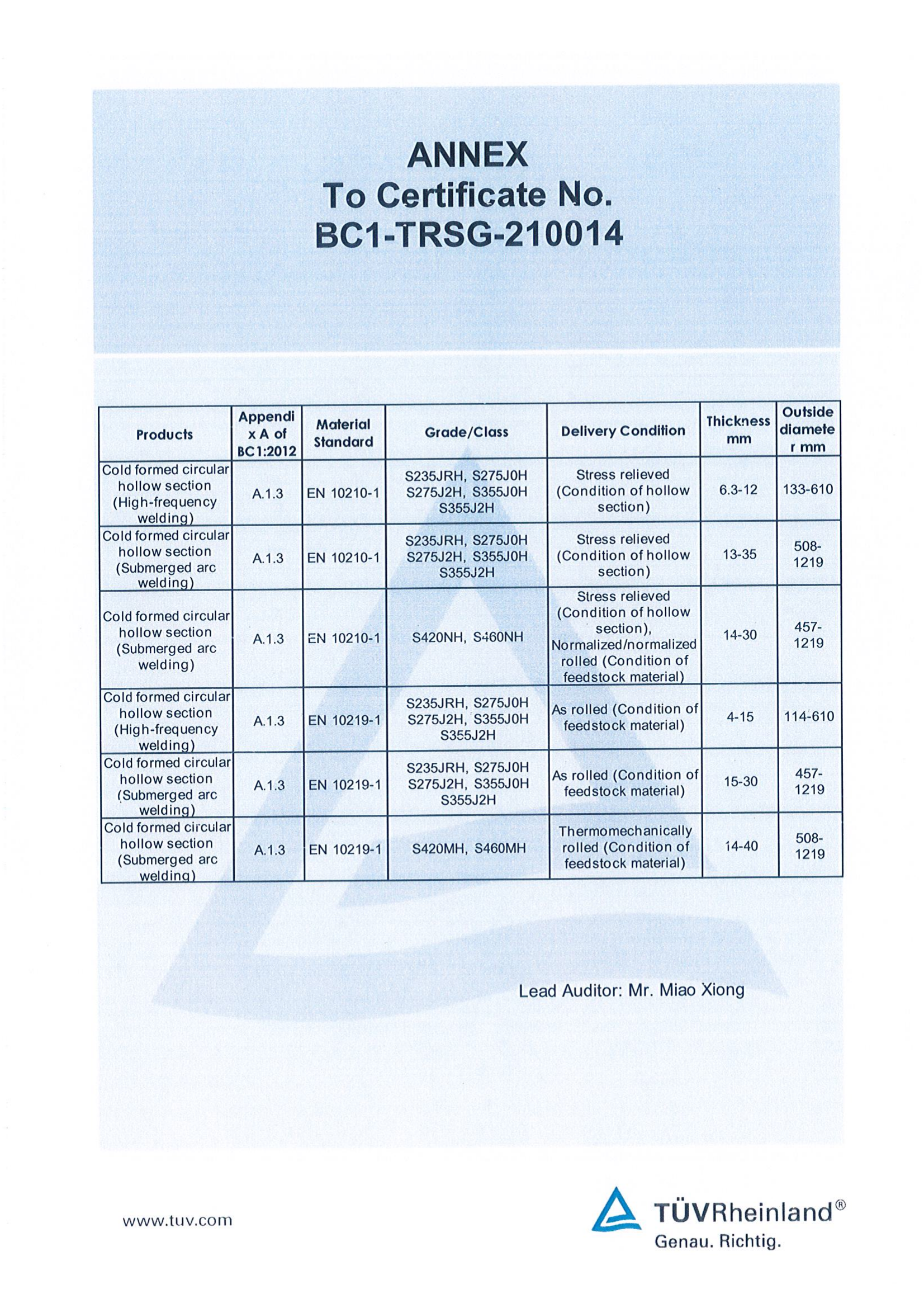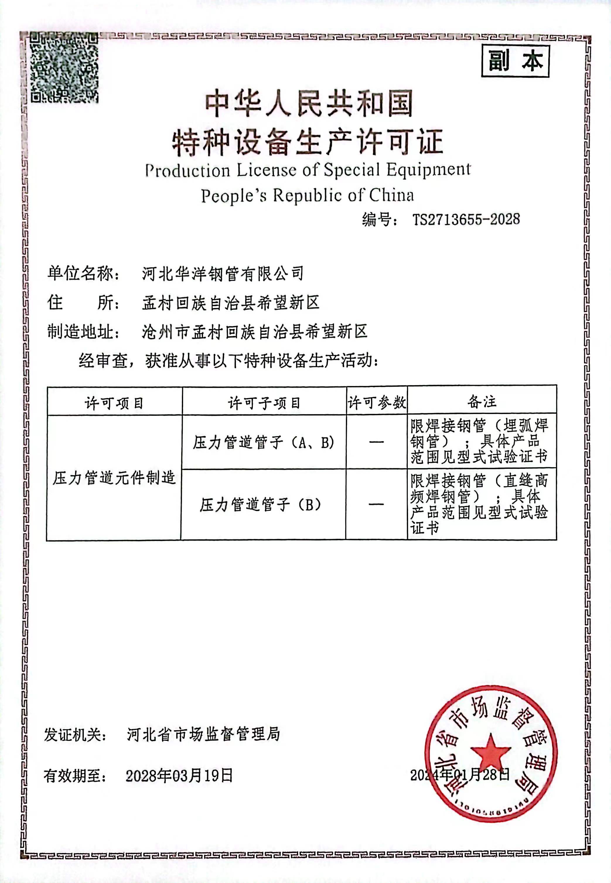 公司(sī)現有17條新型的自動(dòng)化鋼管生產線,包括Φ73-660.4高頻直縫焊鋼管生產線14條、Φ406.4-Φ1422.4直縫雙麵埋弧焊鋼管生(shēng)產線3條,並配備有一(yī)條防腐生產線,可進行3PE、2PE、FBE、2PP、3PP防腐處理,同時還可提供鋼管深加工服務。公(gōng)司擁(yōng)有先(xiān)進的理化實驗室,可承(chéng)擔鋼(gāng)管的各項物理及化學檢測與試驗。公司先(xiān)後取(qǔ)得了ISO9001質量管理體係認證、ISO14001環境管理(lǐ)體係認(rèn)證、ISO45001職業健康安全管理體係認證、特種設備製造許可證、API5L和API2B認(rèn)證證書、歐盟CE認證、俄羅斯GOST認(rèn)證、中海油入網證、安(ān)全生產標準化二級企業(yè)等標準質量體係認證。